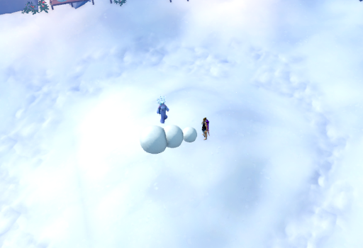 With the perfect items in your inventory, make your way back to the arena and click on the Queen of snow to re-enter the instanced area. Once inside, step over to her on the little hill and she will take your perfect items before asking you to now help her create the perfect snowman body.