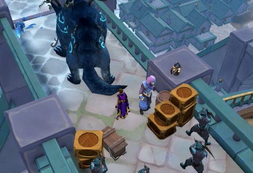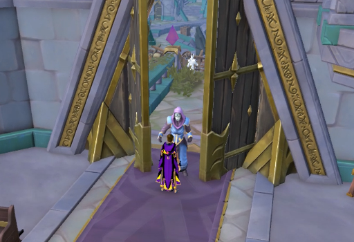 Head over to the Arch-Glacor aqueduct entrance. You can do this by using the Reaper portal (if Arch-Glacor is your reaper task), by attuning a boss portal at War's Retreat and using it, or you can take the long way by teleporting to the Cathedral ($ilnkfull31800) and walking to the Glacor front (suggested to wear a $ilnkfull31878 if you take this method). Regardless of your method, once there, speak to $plnkfull721 and talk to him about the Duel Arena when prompted. After a short exchange, the voices will question whether or not the note was planted to frame the Zarosians and you will be given the option of accusing $plnkfull721. Your choice doesn't matter, as either way he will claim it is a fake attempting to frame $plnkfull3542 and suggest that you should talk to the other gods.